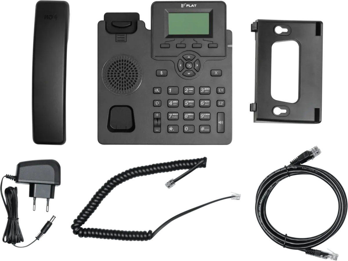 | Комплектация | IP-телефон, трубка, витой соединительный шнур для подключения телефонной трубки к IP-телефону, соединительный шнур Ethernet с коннекторами типа RJ-45, блок питания, подставка, краткое руководство по эксплуатации, гарантийный талон, паспорт, руководство по |