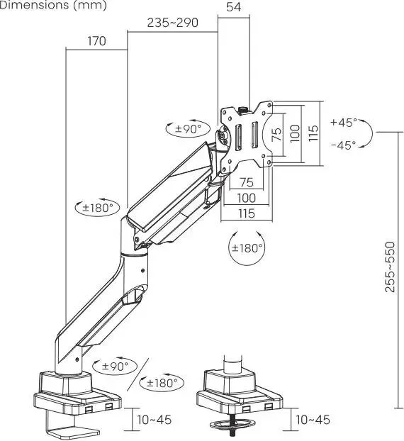 | Угол наклона | +40/-40 ° |
