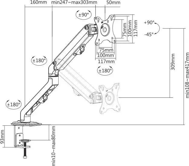 | Угол наклона | -90/+45 ° |