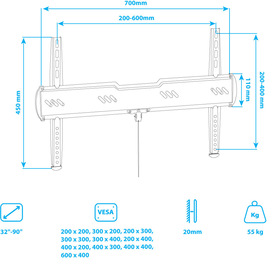 | Размер VESA | 200х200, 200x300, 200х400, 300х200, 300х300, 300х400, 400х200, 400х300, 400х400, 600х400 |