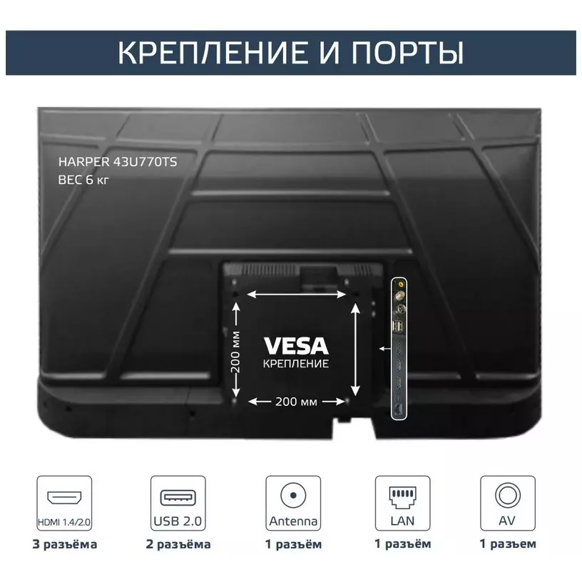 | Крепление на стену (VESA) | 200x200 |