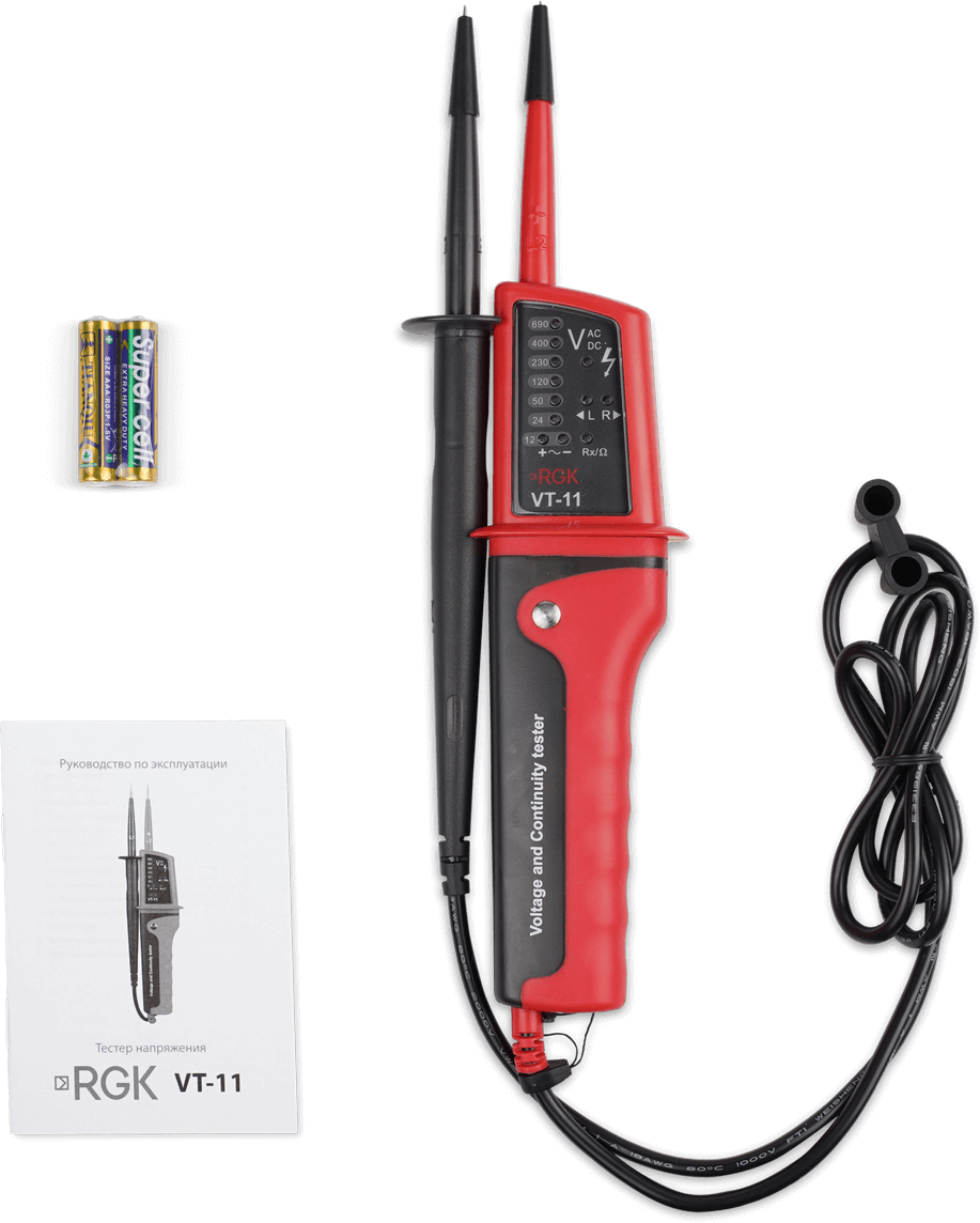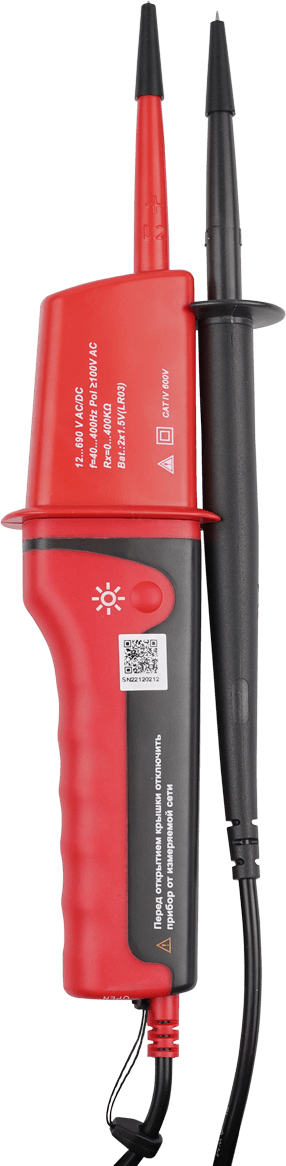 | Дополнительная информация | производит измерения напряжения постоянного и переменного тока (включая трехфазный), проверку чередования фаз, есть проверка одним щупом, возможность тестирования без батарей питания, подсветка, батарейки в комплекте |
