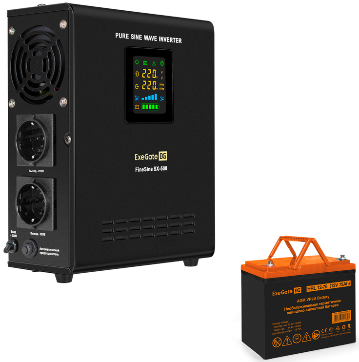 Отзывы на ExeGate FineSine SX-500.LCD.AVR.2SH + HRL 12-75 (75Ач)