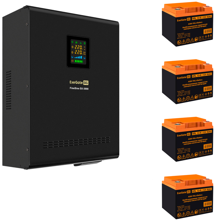 Отзывы на ExeGate FineSine SX-3000.LCD.AVR.2SH.T + 4x HRL 12-45 (45Ач)
