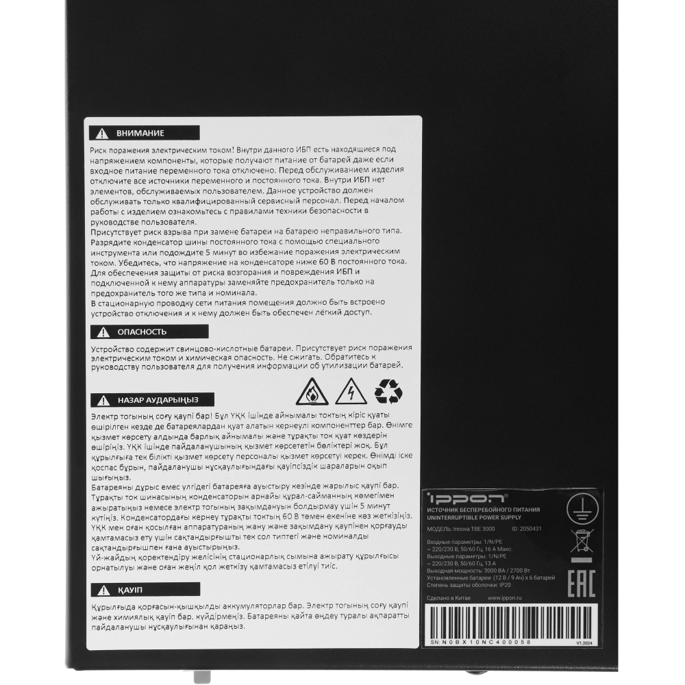 | Тип | ИБП с двойным преобразованием ("онлайн") |