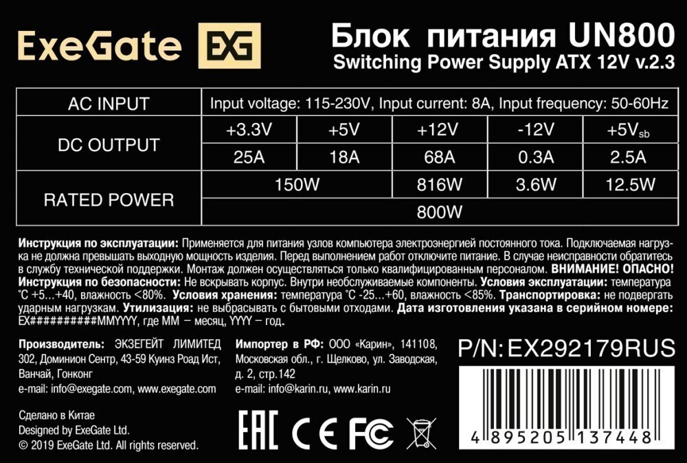Отзывы на 800W ExeGate UN800 (EX292179RUS-S)
