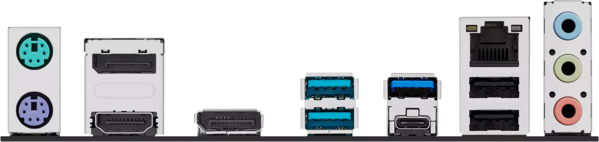 | Разъемы на задней панели | 2 x PS/2, 2 x USB 2.0, USB 3.2 Gen1, 2 x USB 3.2 Gen2, USB 3.2 Gen2 Type-C, HDMI, 2 x DisplayPort, RJ-45 |
