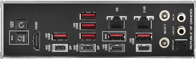 | Разъемы на задней панели | 6 x USB 3.2 Gen2, 2 x USB 3.2 Gen2 Type-C, 2 x USB 4 Type-C, HDMI, 2 x RJ-45, S/PDIF (оптический) |