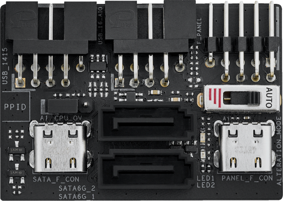 ROG FPS card: 2 x SATA 6Gb/s ports; 1 x CPU Over Voltage jumper; 1 x Front Panel header; 1 x Alteration PCIe Mode switch; 2 x USB 2.0 headers support 3. ROG STRIX HIVE II |