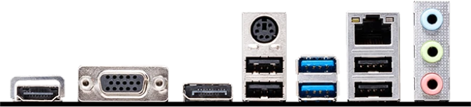 | Разъемы на задней панели | PS/2, 4 x USB 2.0, 2 x USB 3.2 Gen1, VGA, HDMI, DisplayPort, RJ-45 |