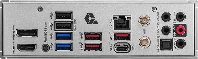 | Разъемы на задней панели | 2 x USB 2.0, 2 x USB 3.2 Gen1, 3 x USB 3.2 Gen2, USB 3.2 Gen2x2 Type-C, HDMI, DisplayPort, RJ-45, S/PDIF (оптический) |