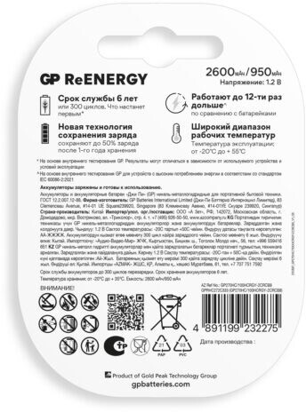 Отзывы на GP ReEnergy (AA+AAA, 2600/950mAh, 8 шт.)
