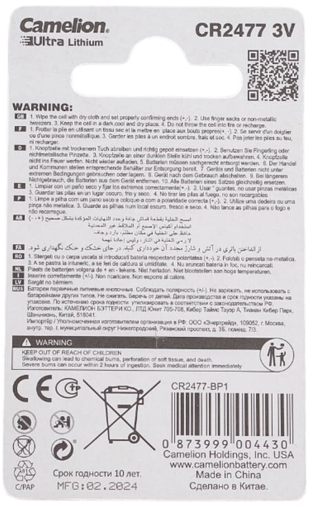 Отзывы на Camelion CR2477-BP1 (CR2477, 1 шт.)