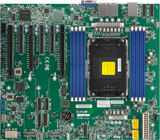 Дополнительная информация | 4 SATA через разъём SlimSAS, 6 PCIe 5.0 x8 через разъёмы MCIO, 1 разъём RJ-45 для удалённого управления |