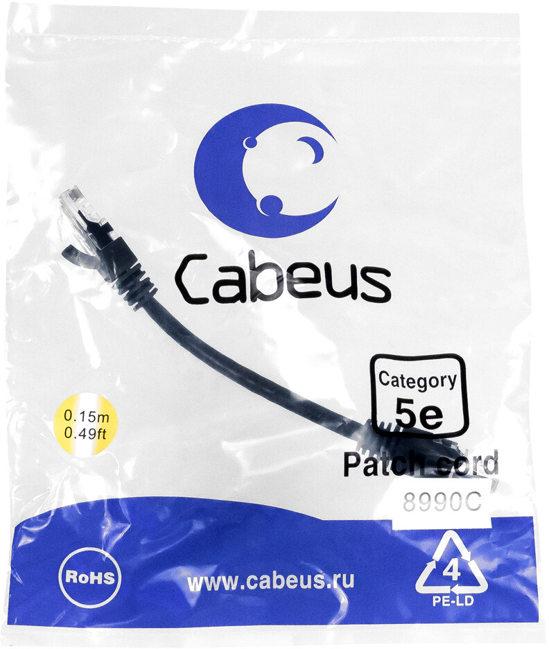 Отзывы на Cabeus PC-UTP-RJ45-Cat.5e-0.15m-BK, 0.15м