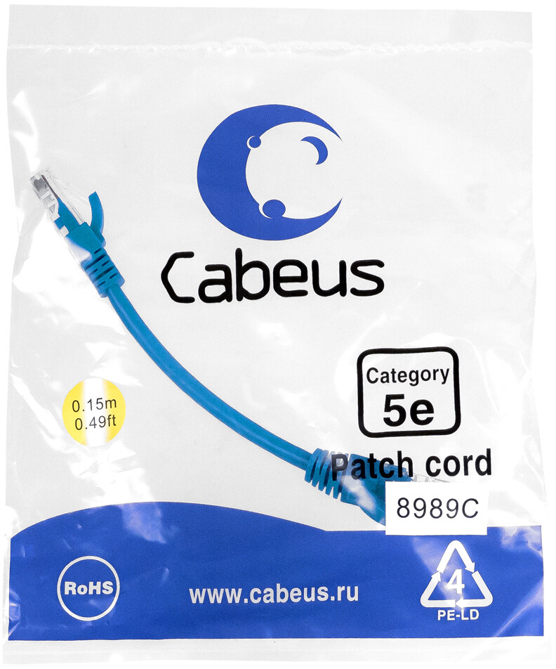 Отзывы на Cabeus PC-UTP-RJ45-Cat.5e-0.15m-BL, 0.15м