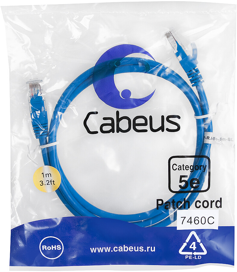 Отзывы на Cabeus PC-UTP-RJ45-Cat.5e-1m-BL, 1м